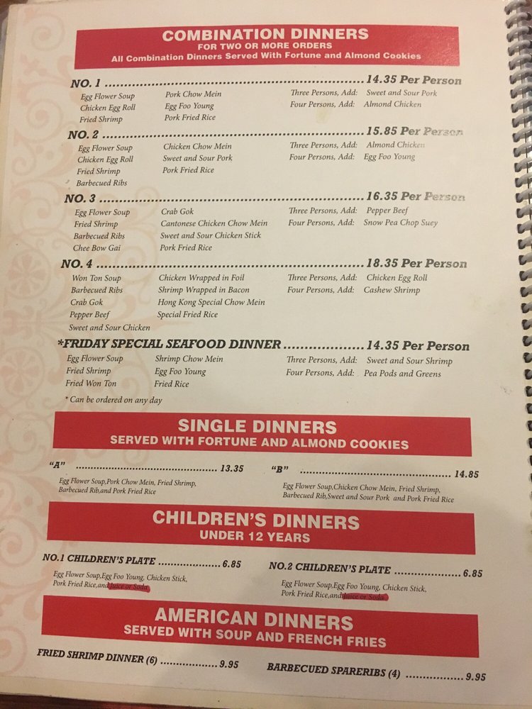 Introducing the menu at Hong Kong Restaurant, a family-owned and operated establishment in Corona, CA, offering a wide range of Chinese dishes. Specializing in traditional flavors, the restaurant provides appetizers like Golden Fried Shrimp and Bacon Wrapped Shrimp, along with flavorful Noodles in Broth options such as Chicken Noodle and Pork Noodles. For a complete meal, try their Single Dinners featuring a variety of dishes like Egg flower soup, chow mein, fried shrimp, BBQ rib, and pork fried rice. With positive reviews praising the quality of food, friendly service, and diverse menu options, Hong Kong Restaurant is a must-visit destination for those craving classic Chinese cuisine with a personal touch. Visit this historical gem for an authentic dining experience that leaves a lasting impression.